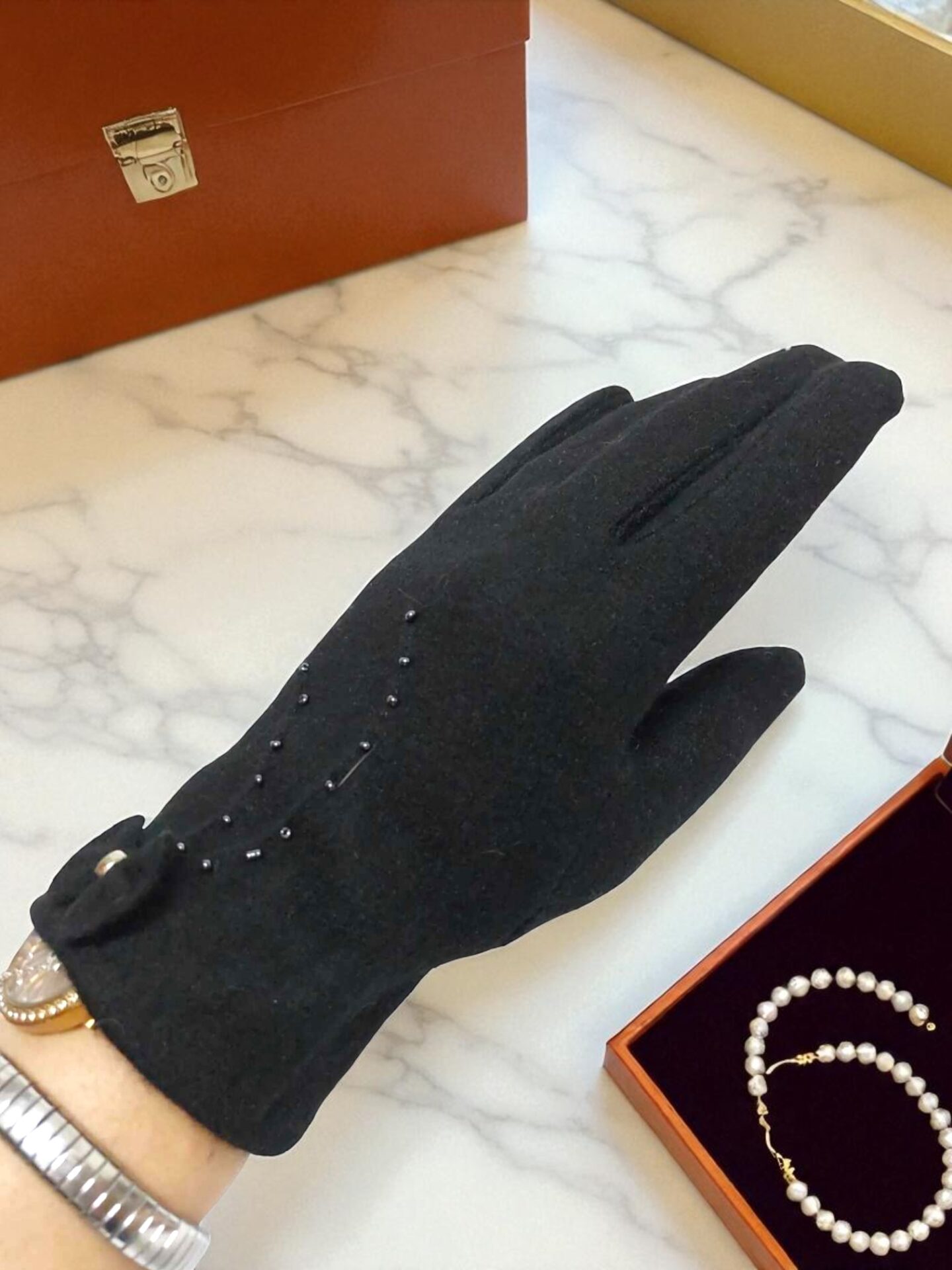 Добавете стил и топлина към зимната си визия с тези елегантни черни дамски ръкавици от висококачествена вълна. Меки и плътни, те предпазват ръцете от студа, без да ограничават движението. Класическият черен цвят ги прави лесни за съчетаване с всякакви връхни дрехи и аксесоари.