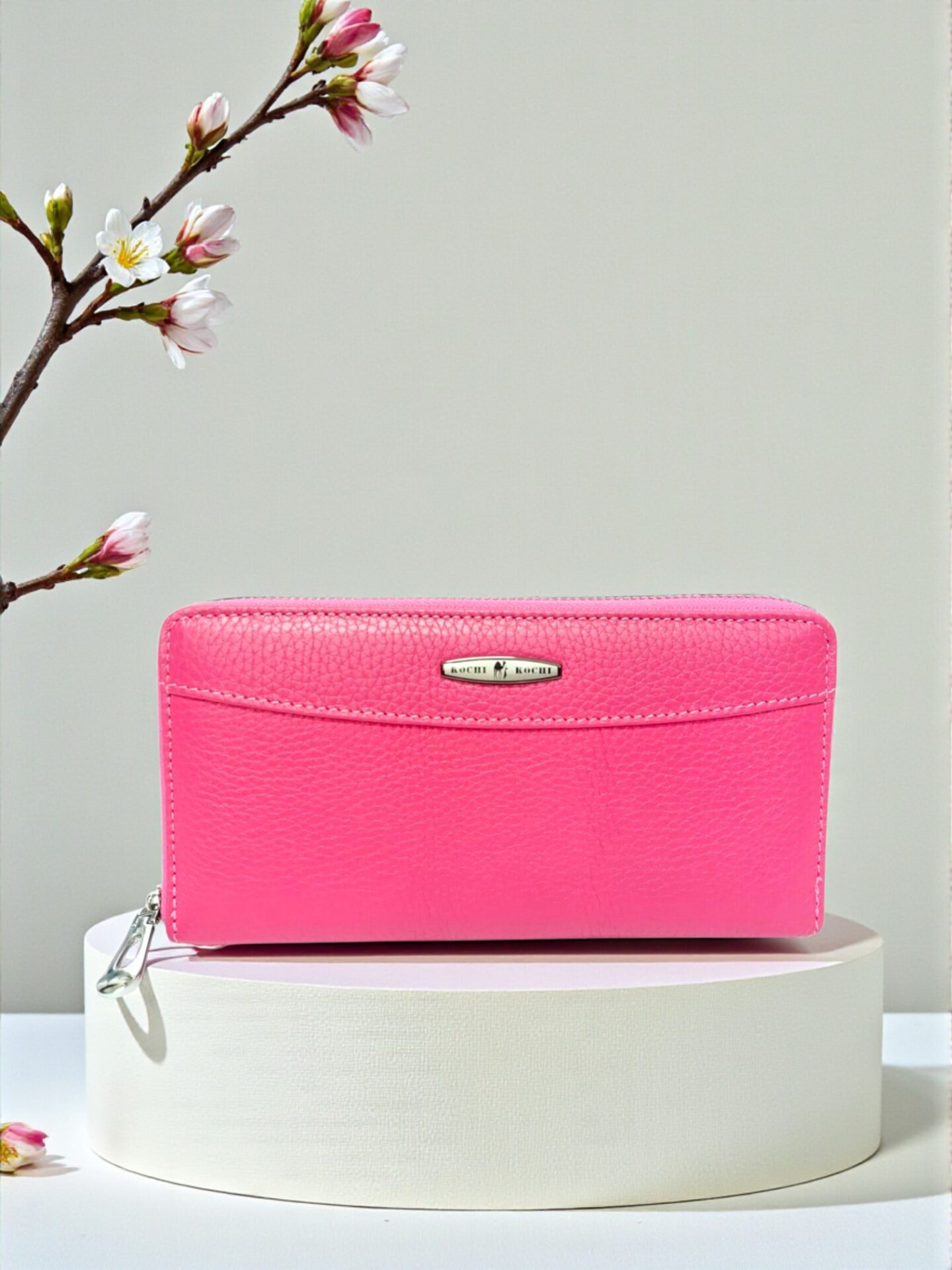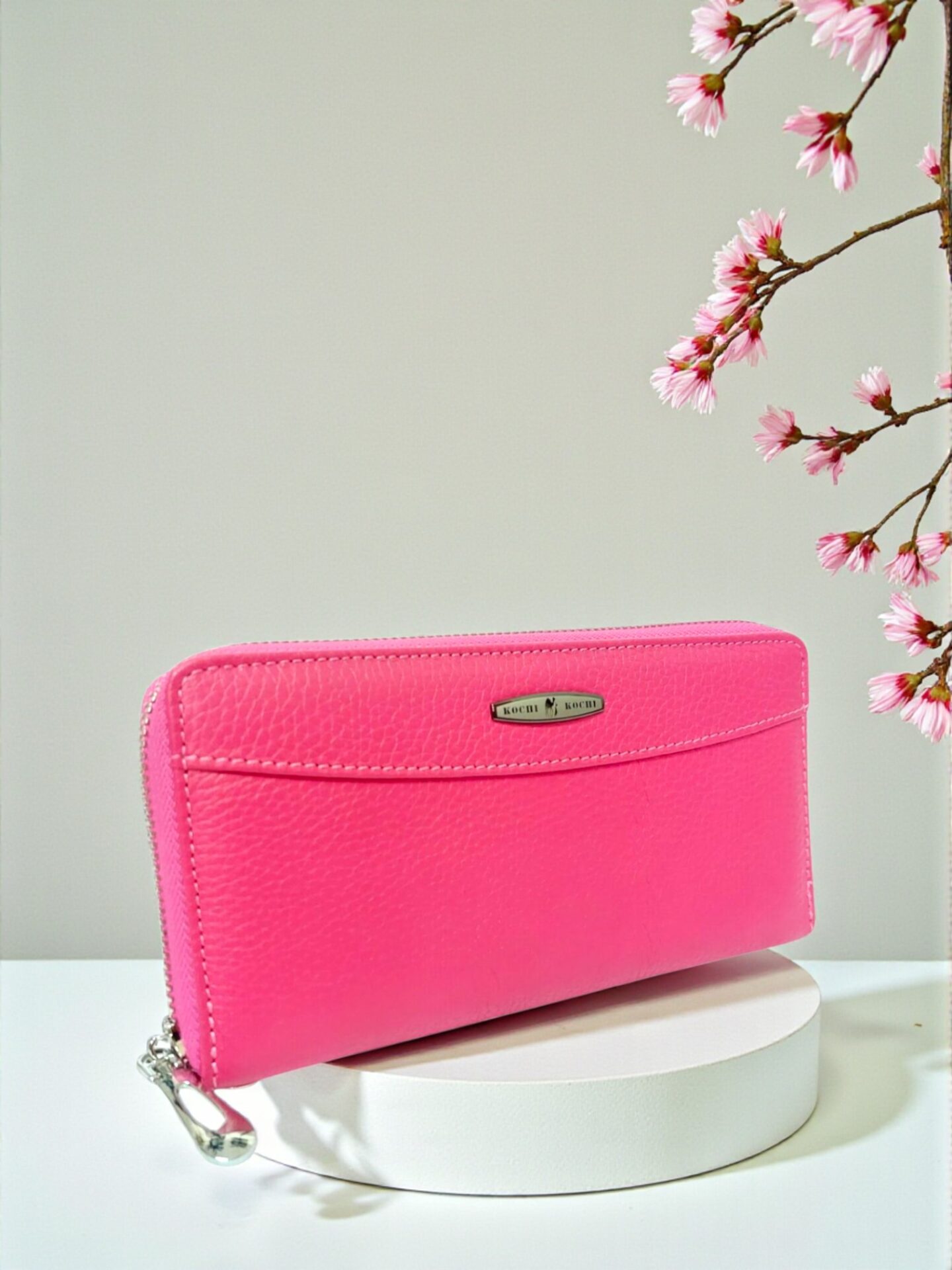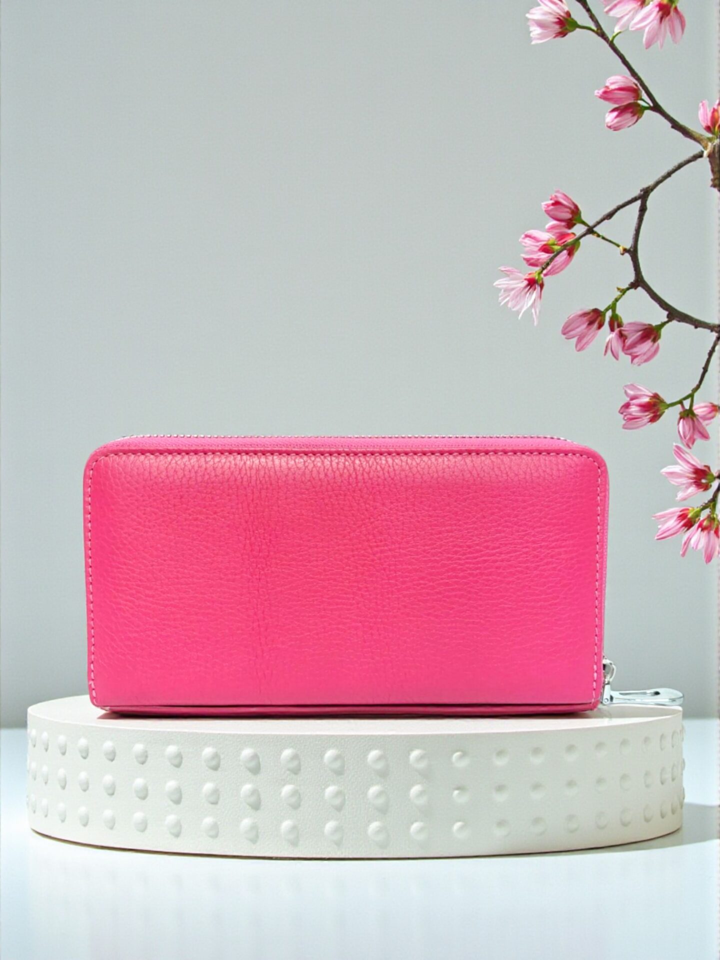 Голямо дамско портмоне в ярко розово (фуксия) от естествена кожа.