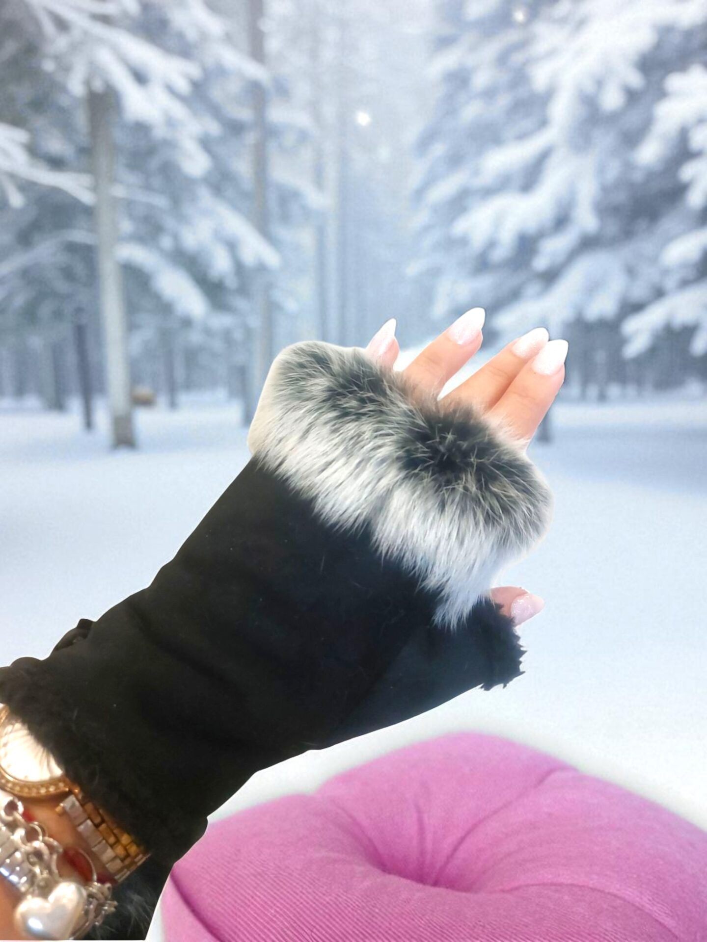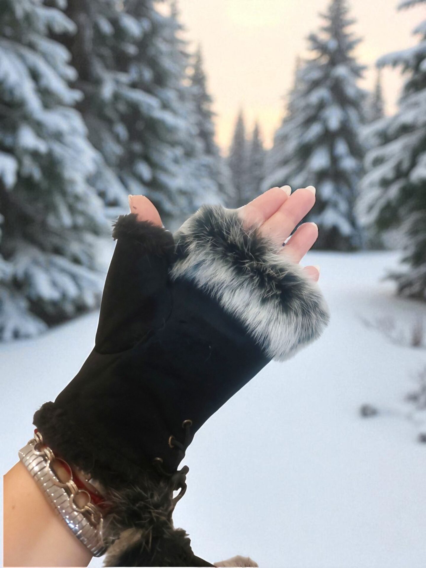 Топли черни ръкавици без пръсти с пух – стил и удобство за зимата!